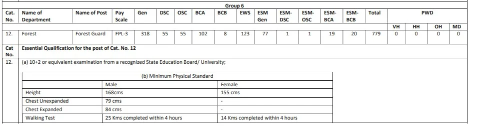 Ans: A total of 779 Forest Guard vacancies have been announced.